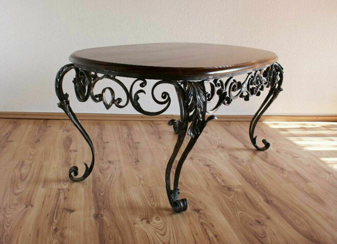 Кованые столы и стулья — идеальный вариант для столовой и гостинной. Такой вид мебели долговечен и устойчив, легко очищается от загрязнений.