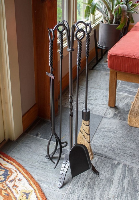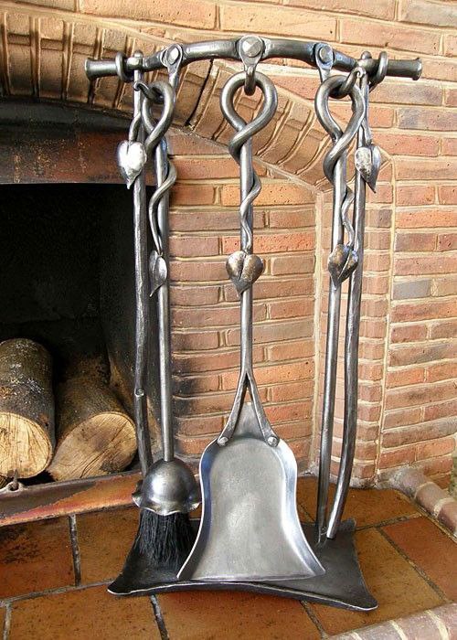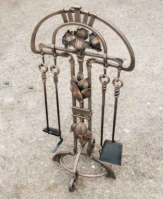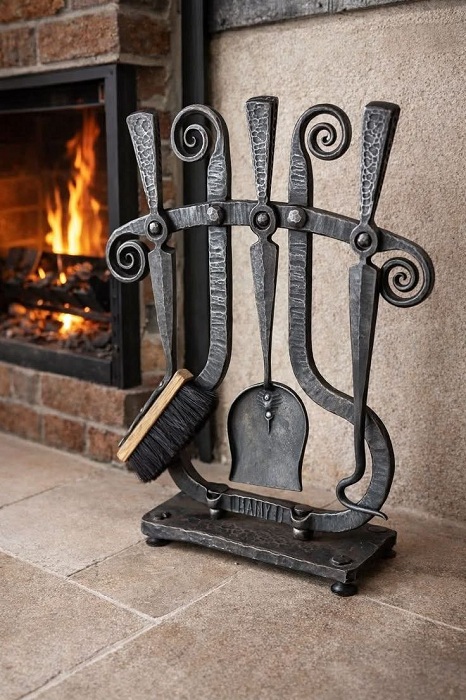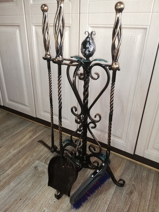 Камінні інструменти з кованого металу стійкі до механічних навантажень, не деформуються та не потребують складного догляду. Їх легко очищати від золи та кіптяви.