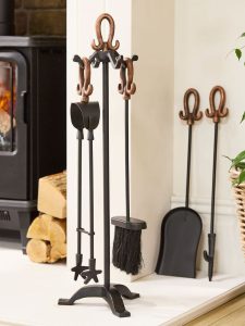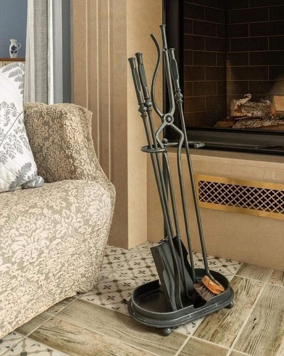 Ковані камінні аксесуари актуальні не лише для власників класичних дров’яних камінів. Їх також використовують для оформлення електричних і декоративних камінів, де вони виконують передусім естетичну функцію та створюють атмосферу справжнього домашнього вогнища.
