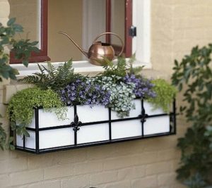 Найпоширеніший варіант. Два або три потужні ковані кронштейни кріпляться до фасаду під підвіконням. На них встановлюється прямокутний або трапецієподібний короб із дренажними отворами.